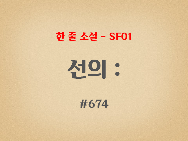 | [한 줄 소설/SF01 - 8부] #676 선의 : (0) | 2019.04.17 |