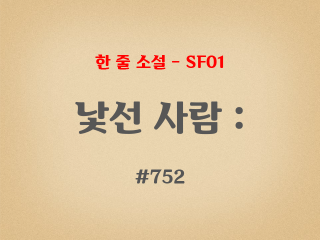 | [한 줄 소설/SF01 - 9부] #750 낯선 사람 : (0) | 2019.05.14 |