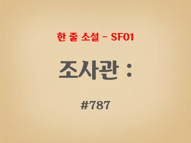 | [한 줄 소설/SF01 - 9부] #785 조사관 : (0) | 2019.05.27 |