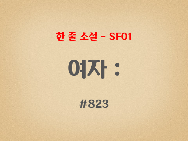 | [한 줄 소설/SF01 - 10부] #825 여자 : (0) | 2019.06.12 |