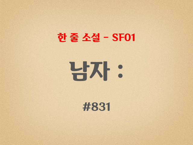 | [한 줄 소설/SF01 - 10부] #829 남자 : (0) | 2019.06.13 |