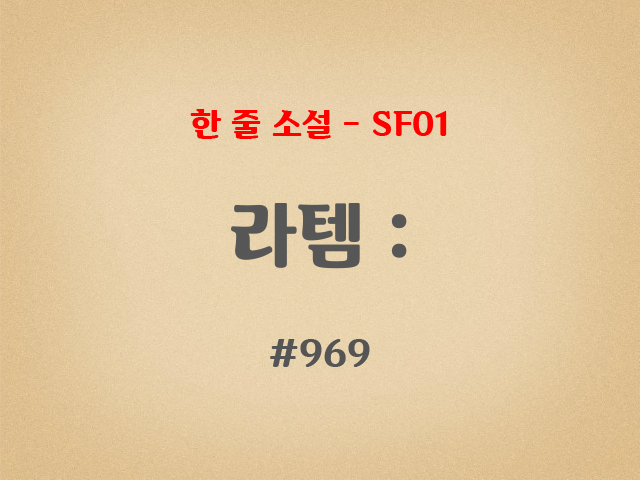 | [한 줄 소설/SF01 - 11부] #971 라템 : (0) | 2019.08.01 |
