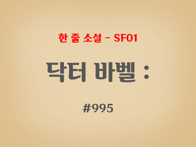 | [한 줄 소설/SF01 - 11부] #993 닥터 바벨 : (0) | 2019.08.09 |